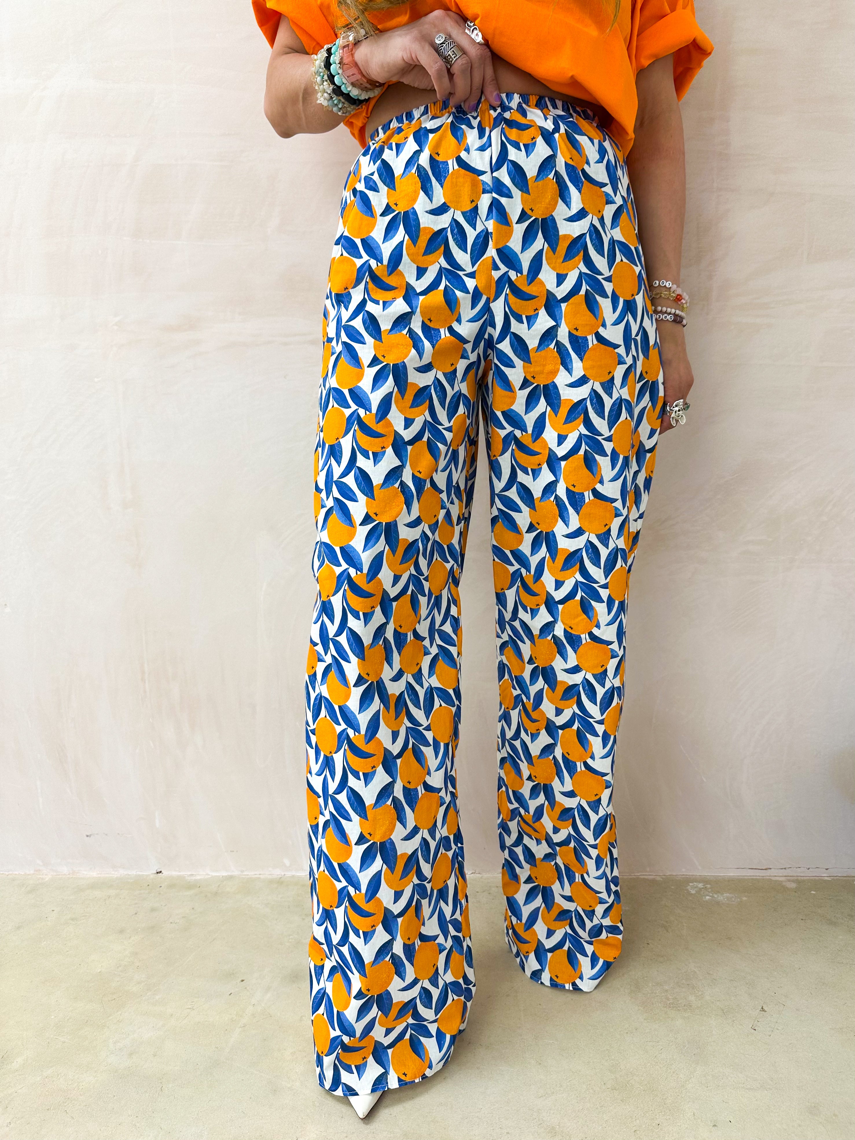 The Sicilia Wide Leg Trousers In Scattered Orange Print