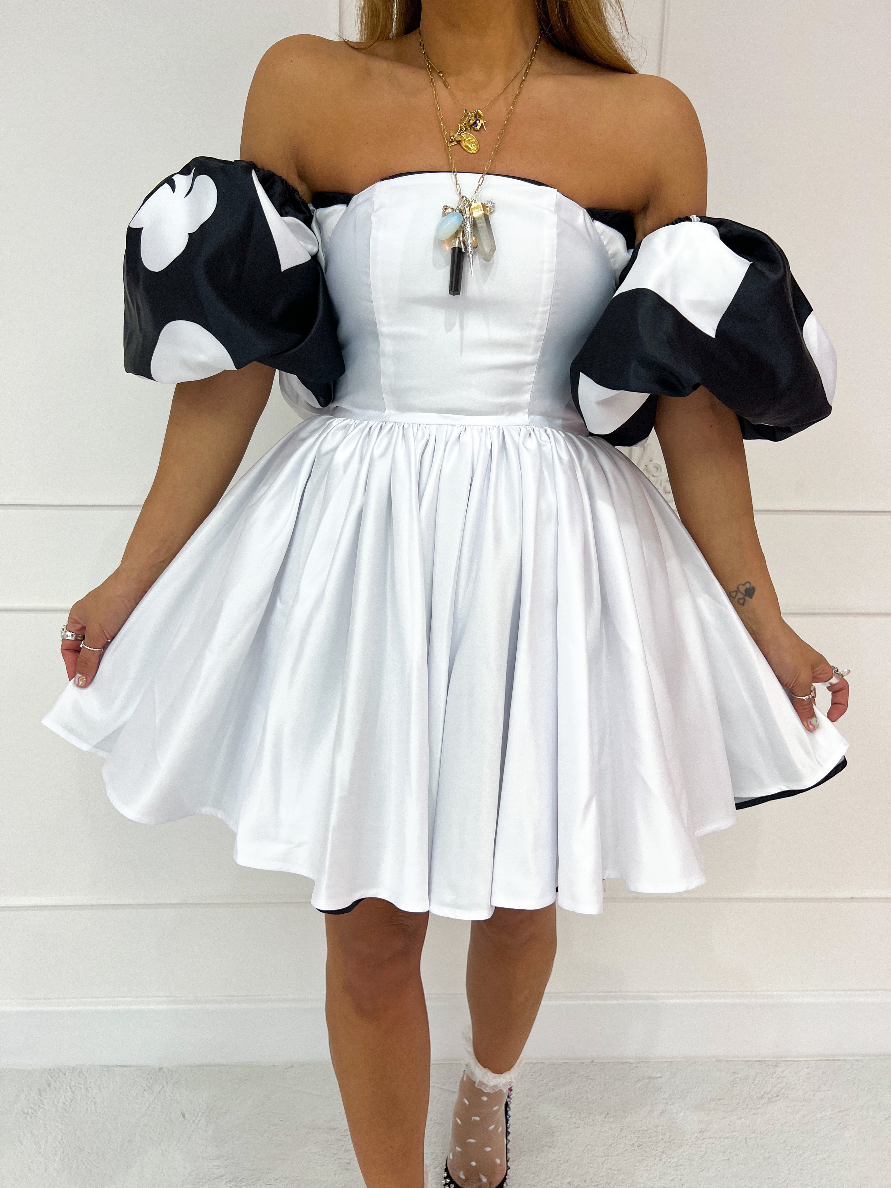'Wonderland' Reversible Corset Mini Dress In Black/White