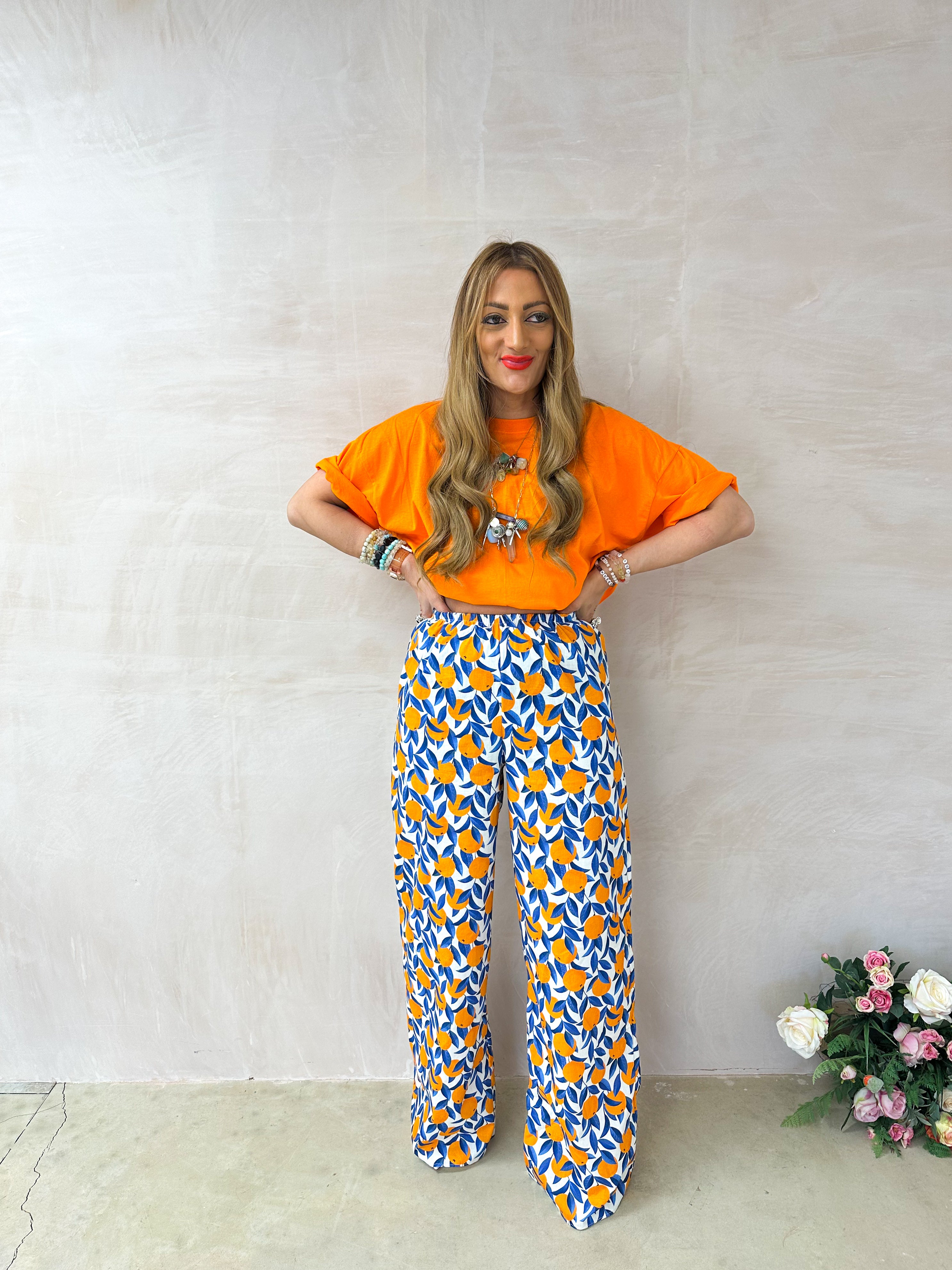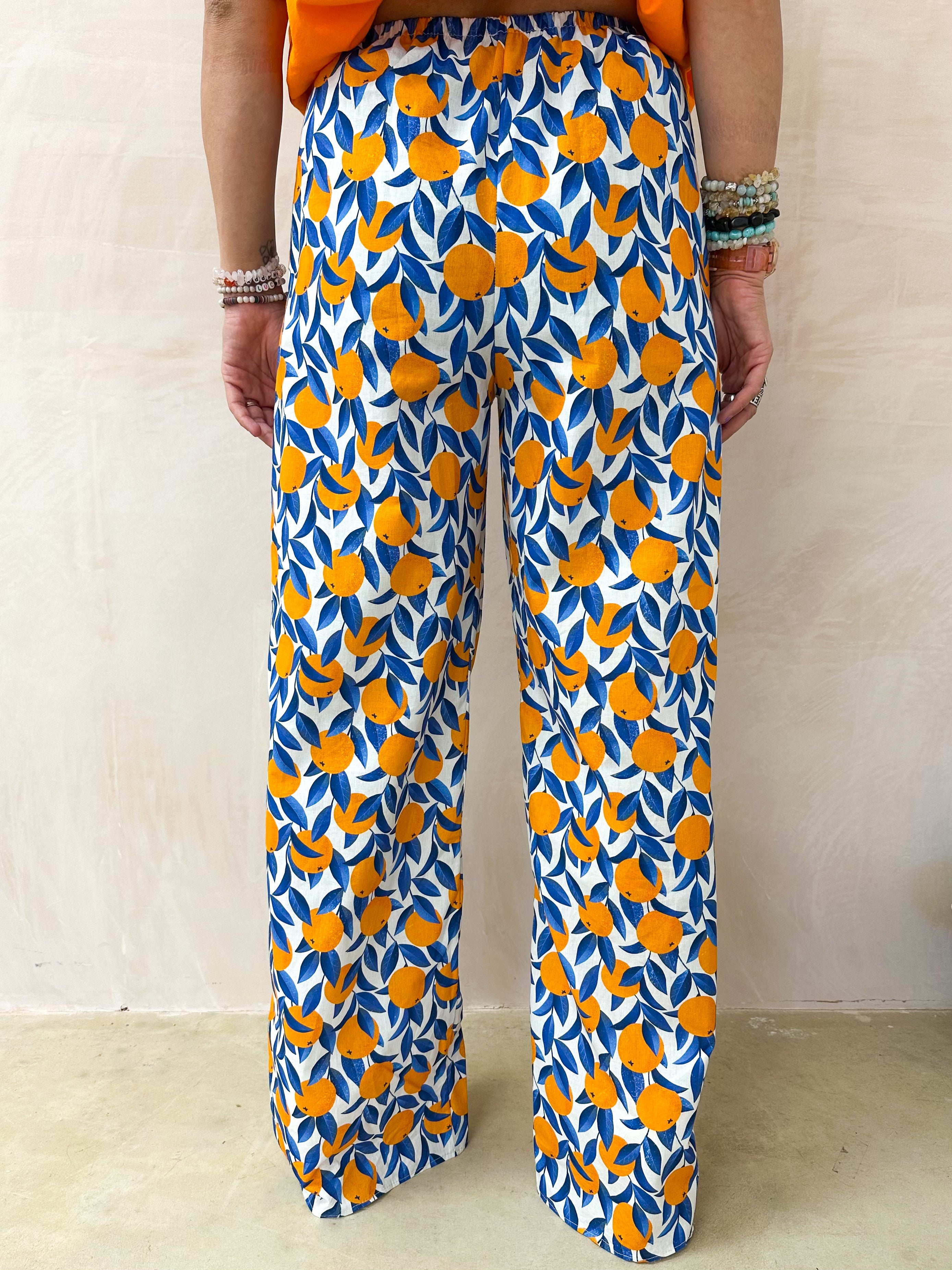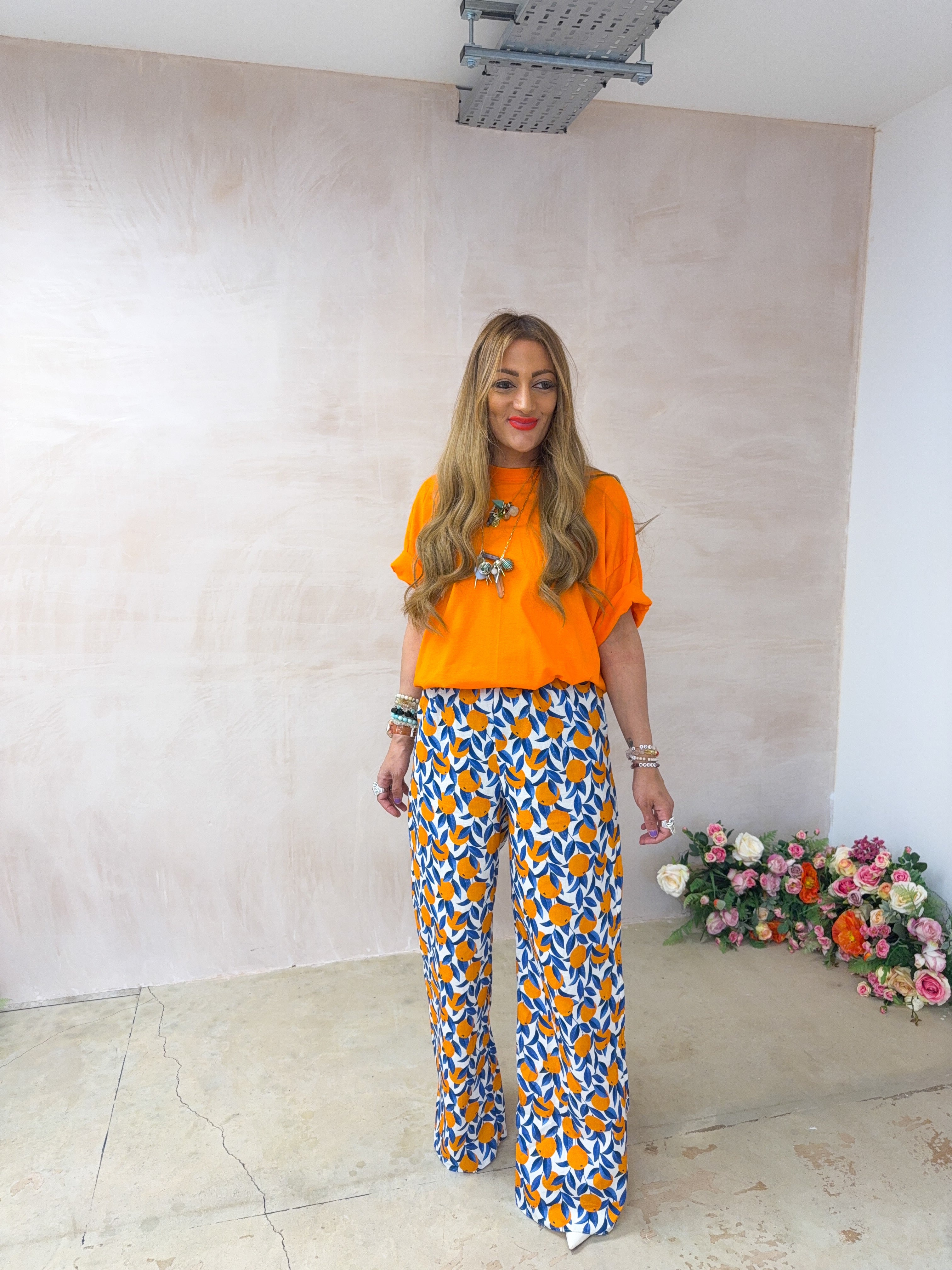 - The Sicilia Wide Leg Trousers In Scattered Orange Print
