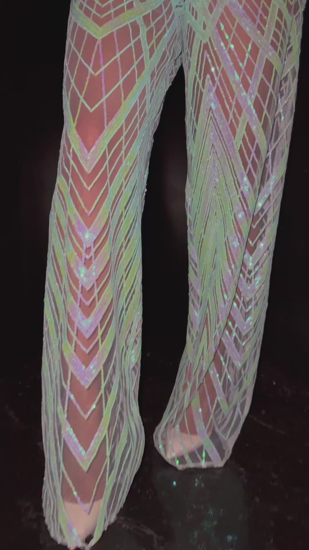 - Solaris Vega Sequin Wide Leg Trousers In Baby Blue